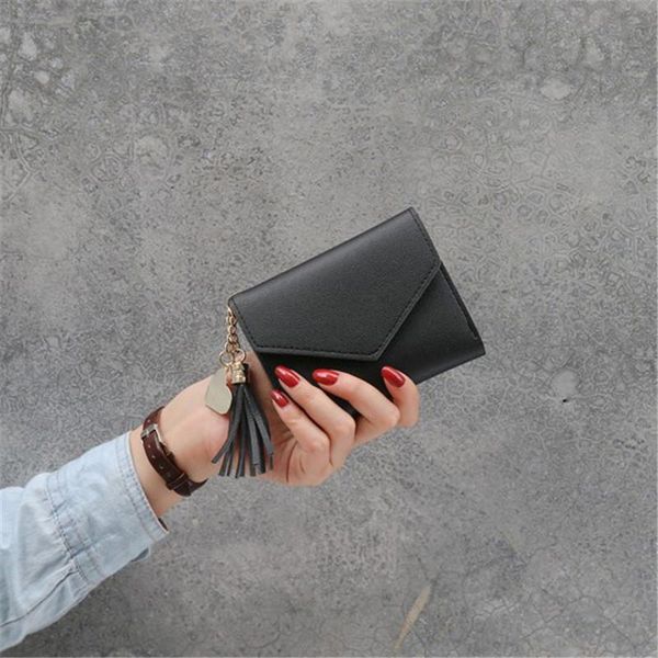 wallets fashion hasp purses portefeuille female purse tassel women wallet short pu leather ladies clutch for s, Red;black