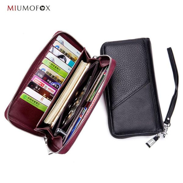 wallets rfid theft protect cow leather high capacity long wallet man carteira men purse multifunction card holder handbag w366, Red;black