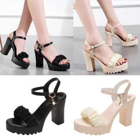Cethrio Women s Comfort Flatform Sandals- Wide Width with Pockets Heel Fish Mouth Platform Heel on Clearance Black Dressy Sandals/ Slides Size 6