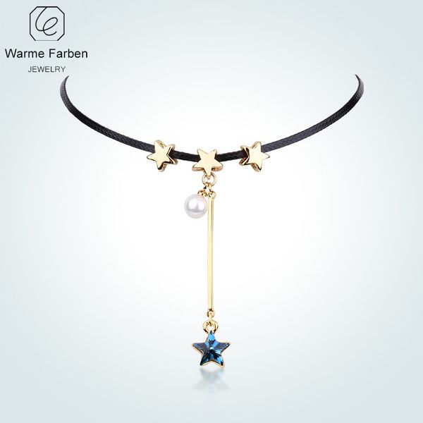 warme farben fashion jewelry women choker necklace baroque clavicle black rope chain star pearls necklace collar for party girls, Silver