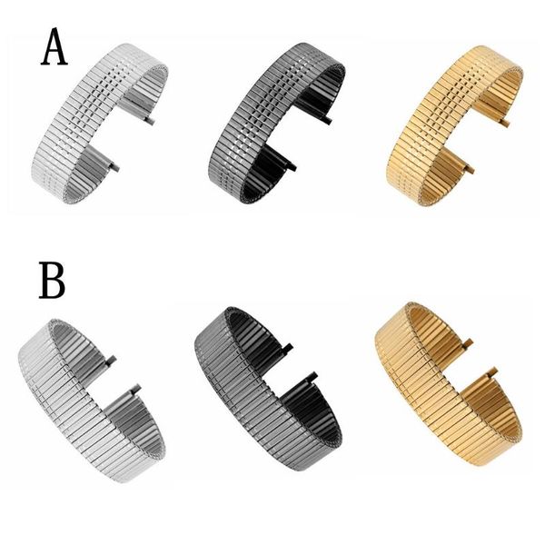 watch bands practical silver/black/gold stainless steel replacement strap no buckle elastic watches band solid metal wristwatch, Black;brown