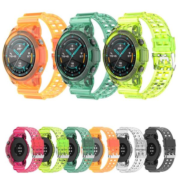 watch bands silicone strap for huawei gt2 46mm tpu glacier integrated transparent sport watchband bracelet replacement accessories, Black;brown