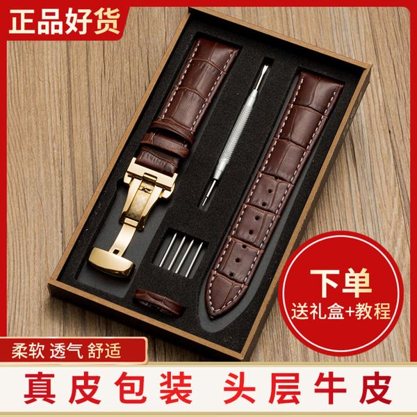 watch strap leather in gift box, Black;brown