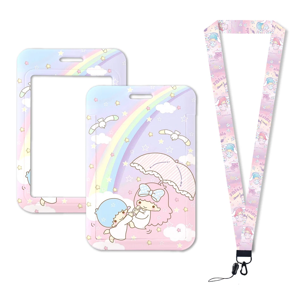 W Lanyards Keychain Credential Case Gift Cartoon Twin Stars ID Card Holder Neck Strap Pendant Girls Door Badge Holder