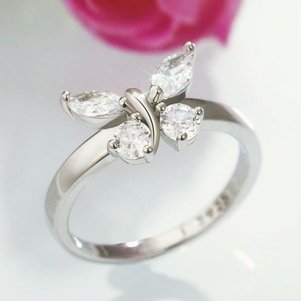 wedding rings caoshi trendy zirconia butterfly for women fashion contracted daily wearable jewelry fashionable modern girls, Slivery;golden