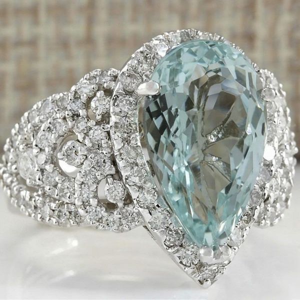 wedding rings deluxe fashion sea blue diamond female engagement ring size 6-11, Slivery;golden