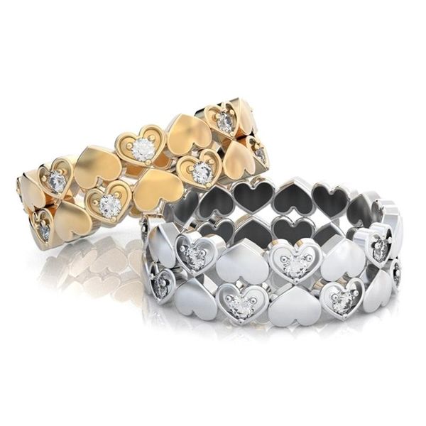 wedding rings fashion minimalist double layer zircon heart for women girl charm jewelry couple gifts, Slivery;golden