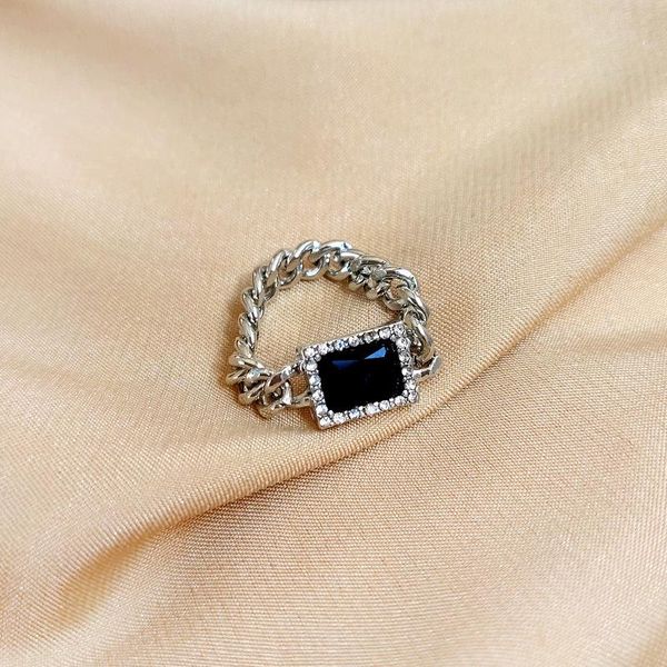 wedding rings fashion temperament black ashlar ring creative design sense diamond personalized chain index finger, Slivery;golden