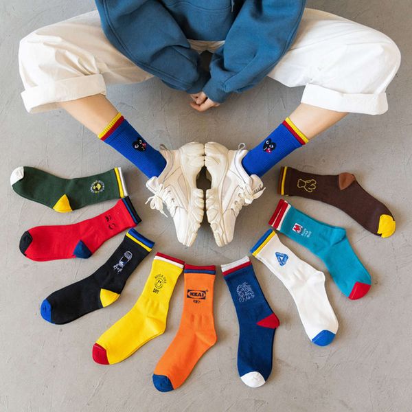 wheat socks wa autumn winter new ins wind tube tide women's long high waist cartoon character, Black
