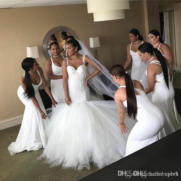 whie sexy meamaid тюль винтаж boho свадебное платье для девочек 2018 свадебные платья милая падение талии, White