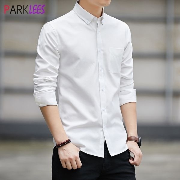 white cotton oxford shirt men brand slim fit long sleeve mens dress shirts casual button down male business office shirt 210522, White;black