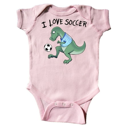 Inktastic I Love Soccer-Dinosaur in Blue Gift Baby Boy or Baby Girl Bodysuit