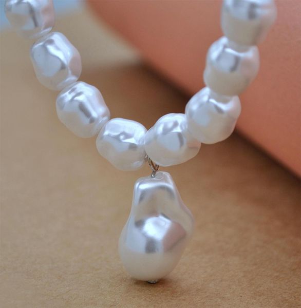 white pearl necklace female irregular shape pendant coarse neck choker accessories9385124, Silver