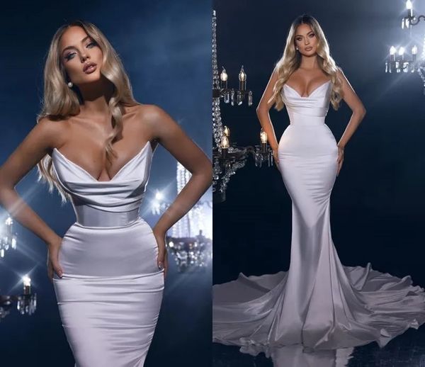 white v neck evening dress 2023 pleated empire waist mermaid sleeveless satin prom formal gowns robe de soiree 2023 vestidos feast, Black;red