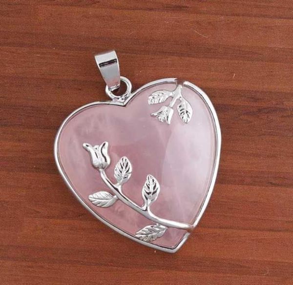 whole 10pcs charm silver plated natural rose quartz stone heart shape chakra stone pendant jewelry2279273