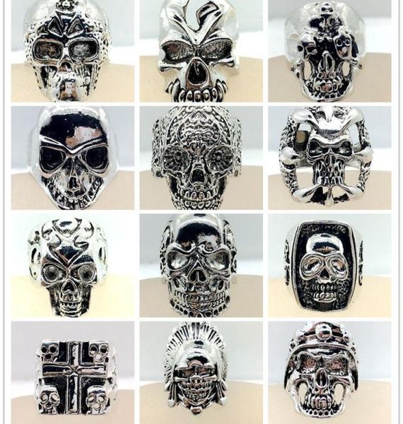 whole 30pcs men039s mix style big size skull carved biker silver plated rings jewelry punk skeleton ring2322708