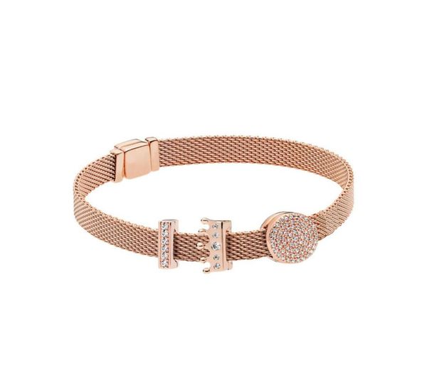 whole925 sterling silver rose reflection logo charm crown eternal bracelet box1380880, Golden;silver