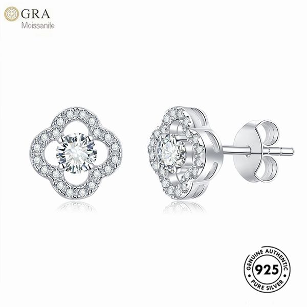 wholesale 0.3ct moissanite clover fine jewelry earrings in 925 sterling silver online ready to ship, Golden;silver