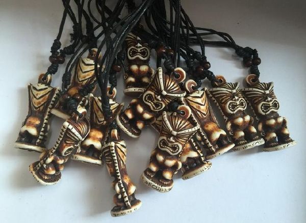 wholesale 12pcs mens brown tribal bone powder carved tiki man totem necklace, Silver