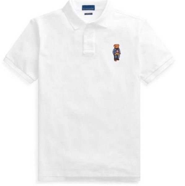 wholesale 2022ss new lapel short-sleeved men's casual shirt embroidered bear t-shirt british business sports cotton55, White;black