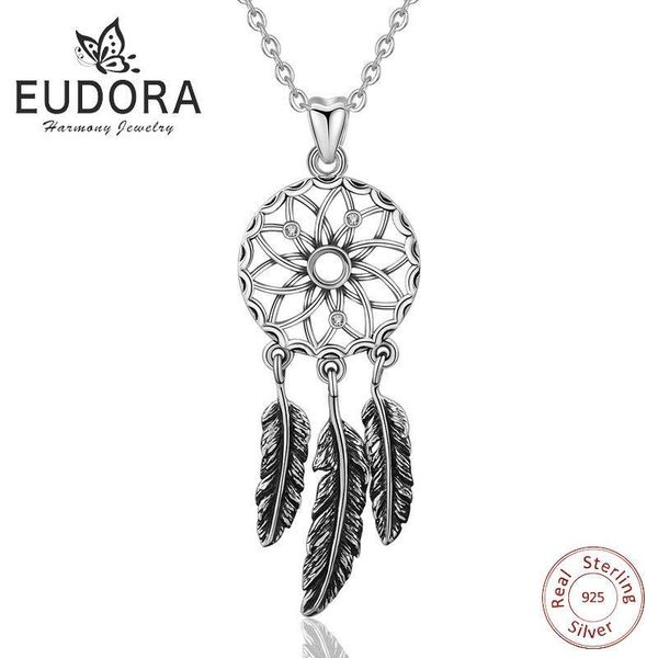 wholesale 925 sterling silver feather dreamcatcher pendant crystal cz necklace for men women friend gift sliver jewelry cyd262