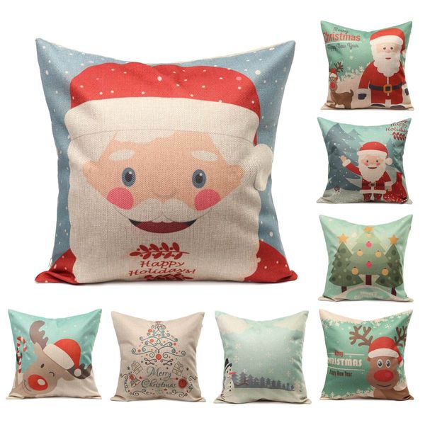 wholesale-wholesale christmas series pillow case cover linen cotton square cartoon santa claus snowman elk tree pattern xmas pliiowcase