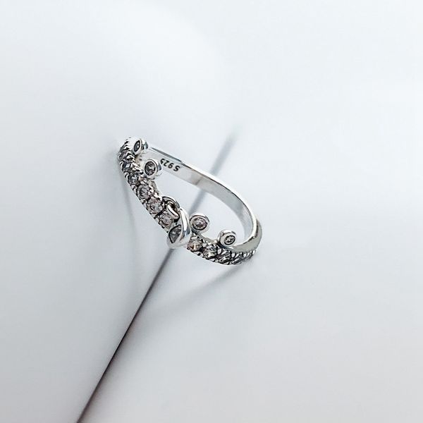 wholesale- drops 925 sterling silver ring with original box smart joint curve curved wavy inlay cz diamond lady ring for pandora jewelry, Slivery;golden