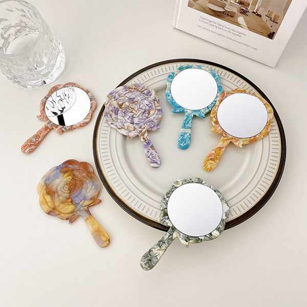 wholesale flower shape compact mirrors single side fashion makeup mirror with handle women girls mini cosmetic mirrors