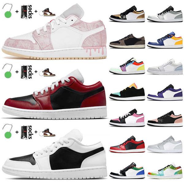 wholesale jumpman 1 1s low basketball shoes paint drip chicago flip panda womens mens trainers gold toe dio pine green luxurys designers