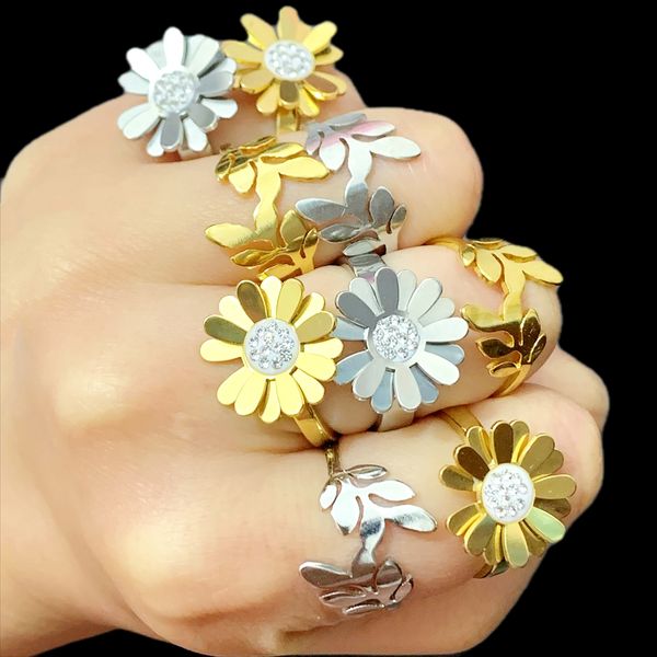 wholesale lot 30pcs beauty flower leaf crystal wedding finger rings mixed style stainless steel fashion women lovers engagement charms party, Slivery;golden