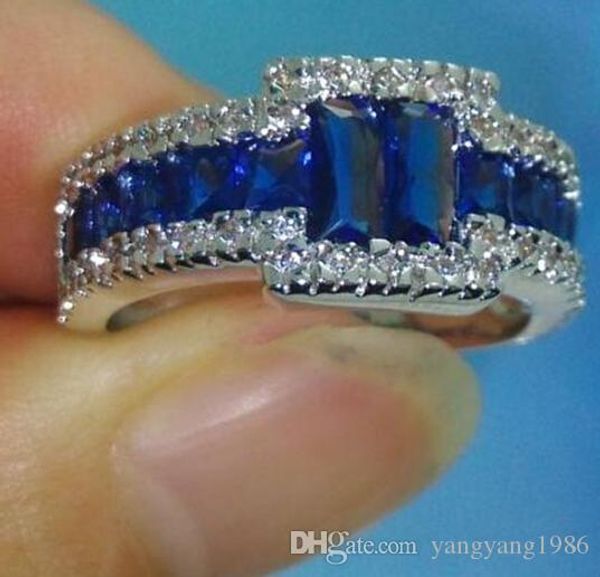 wholesale - luxury size 9/10/11 brand jewelry 10kt white gold filled blue sapphire gemstones men wedding ring patty gift with box