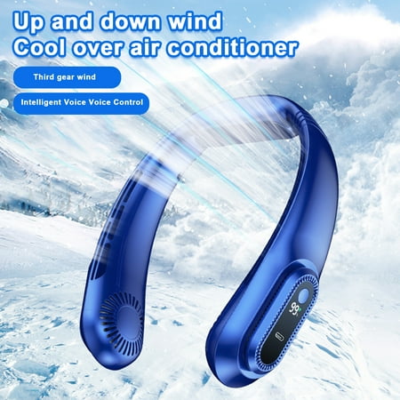 Anvazise Rechargeable Smart Voice Control Neck Fan with 3 Speeds Intelligent Digital Display USB Charging Bladeless Turbo Cooling Electric Fan Summer Supplies Pink One Size