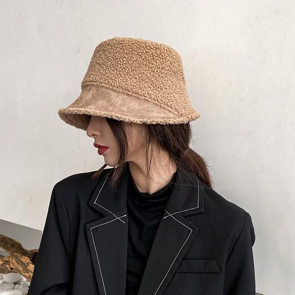 wide brim hats 2021 woman winter caps suede warm fashion street front back splicing leisure lady bucket cap men women fishermen hat, Blue;gray