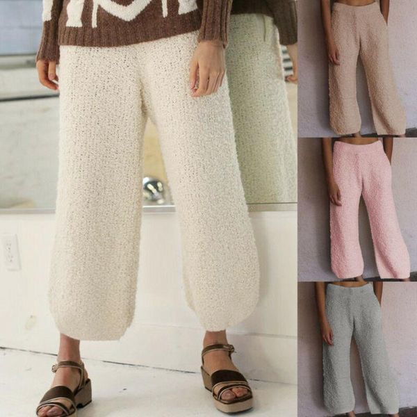winter autumn fashion womens high waist elastic fleece long pants baggy relaxed straight trousers home wear casual solid women's & capr, Black;white