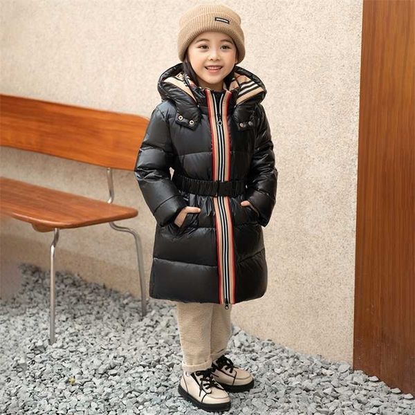 winter children's down jacket girls red fashionable waterproof youth long warm thick coat big kids winter clothes 211203, Blue;gray