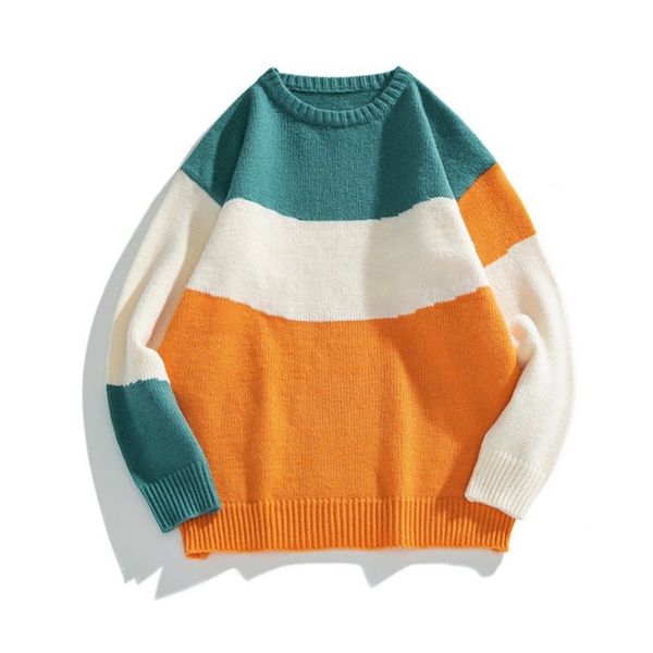 winter men o-neck sweater hip hop harajuku streetwear korean style loose warm patchwork pullover knitwear oversized sweater 210804, White;black