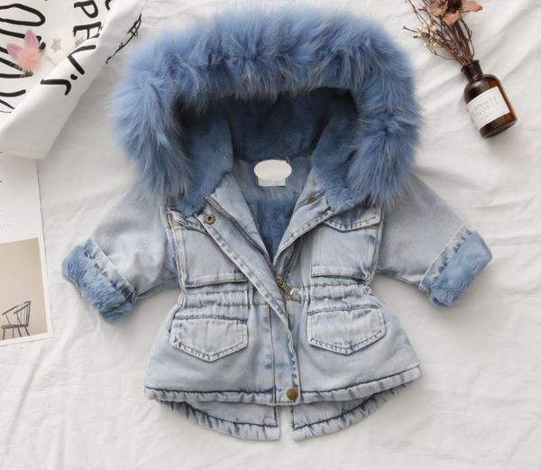 winter spring kids girls hooded denim jacket children plus size thick velvet jacket clothes outerwear, Blue;gray