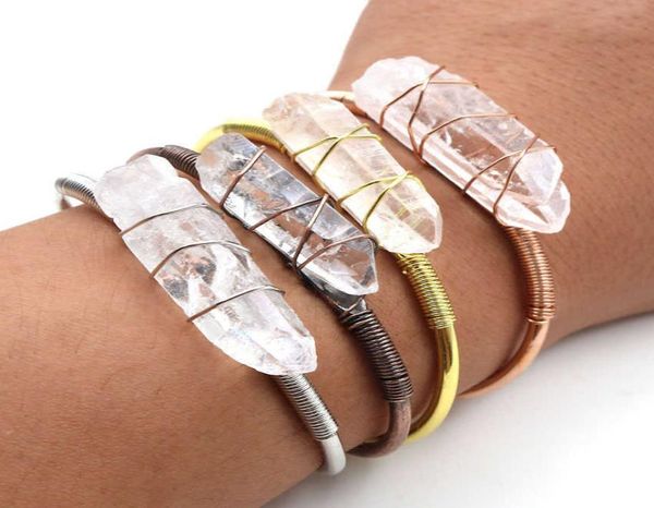 wire wrap raw mineral crystal stone bangles natural stone clear quartz bangles bracelets open cuff copper bangles female jewelry q6457241, Black