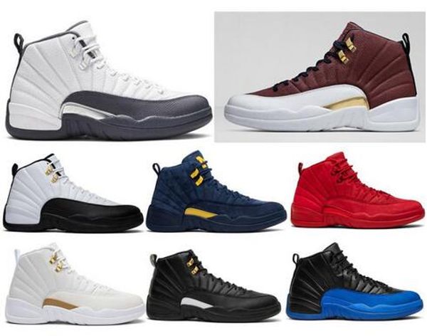 with box 12 12s game ball dark grey sunrise men basketball shoes michigan wntr gym red flu game fiba bumblebee sports designer sneakers