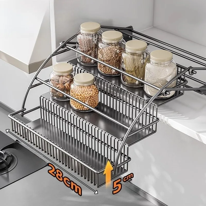 Hanging Pull‑Down Basket, Under‑Cabinet Spice Drawer, Overhead Telescoping Rack, Kitchen Seasoning Shelf—For Small Kitchens