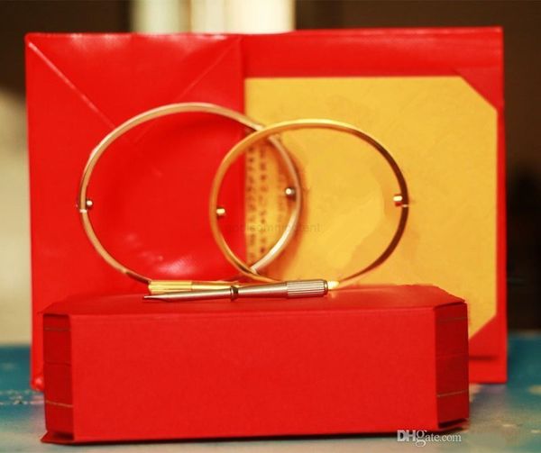 with box love bracelet bangle women men titanium steel gold silver screw screwdriver couple bracelets jewelry, Black