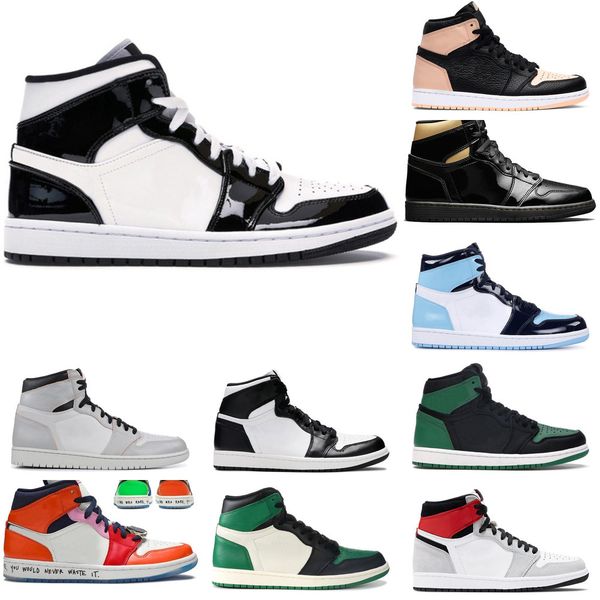 with box new arrival high og women men jumpman 1s basketball shoes mid milan black gold bloodine tie-dye mens trainers sports sneakers 36-46