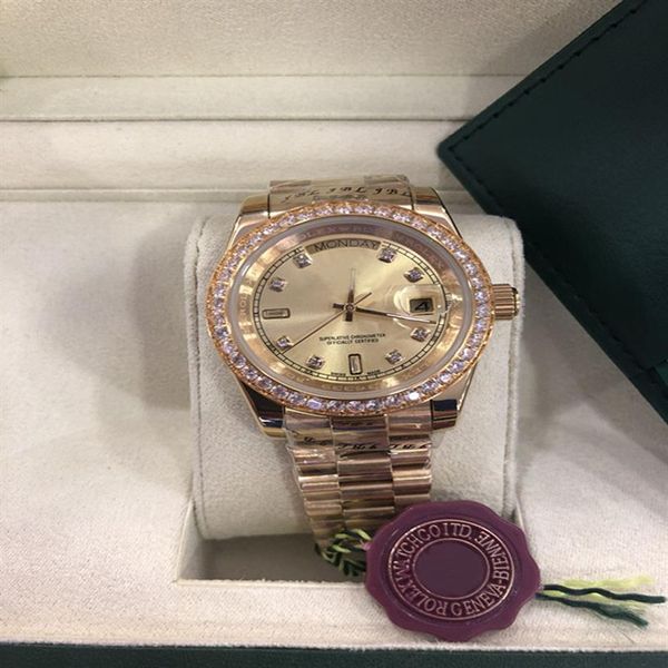 with original box whole - luxury 18k gold diamond perpetual day date automatic mens watch gold mechanical sport men's wat339a, Slivery;brown