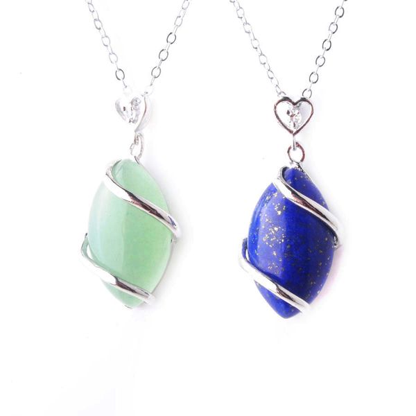 wojiaer 1pcs horse eye shape natural stone necklace amethyst pendants bead reiki fashion couple trinket chain 45cm bn322, Silver