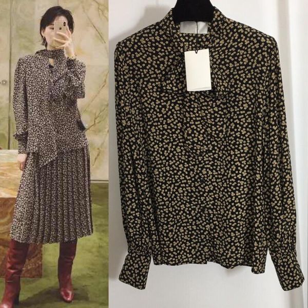 women's blouses & shirts 100% silk shirt spring 2021 fashion bow black elegant office ladies printed blouse, White
