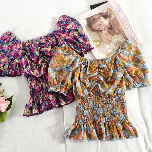 women's blouses & shirts 2021 delivery fast printing short-sleeved short version beautiful girl good quality elastic shirt design blous, White