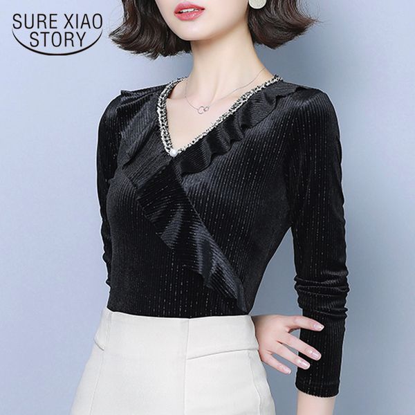 women's blouses & shirts 2021 spring fashion solid slim long sleeve backing shirt v-collar women and ladies ruffles 8140 50, White