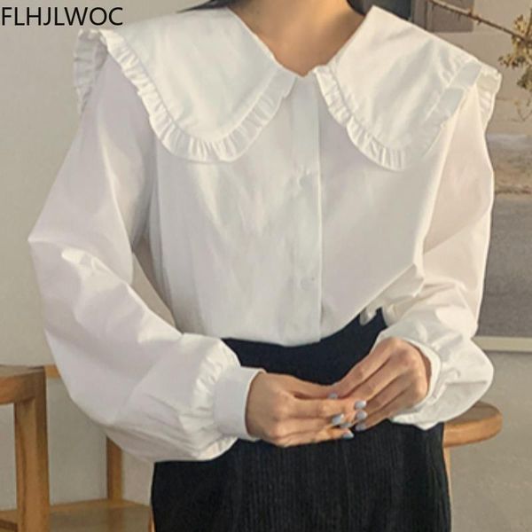 women's blouses & shirts 2021 spring korea chic fashion clothes women long sleeve blusas solid white shirt single breasted button and