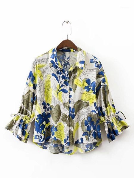 women's blouses & shirts 2021 wishbop est multicoloured 3/4 gathered bell sleeves floral print button-front blouse casual shirt -, White