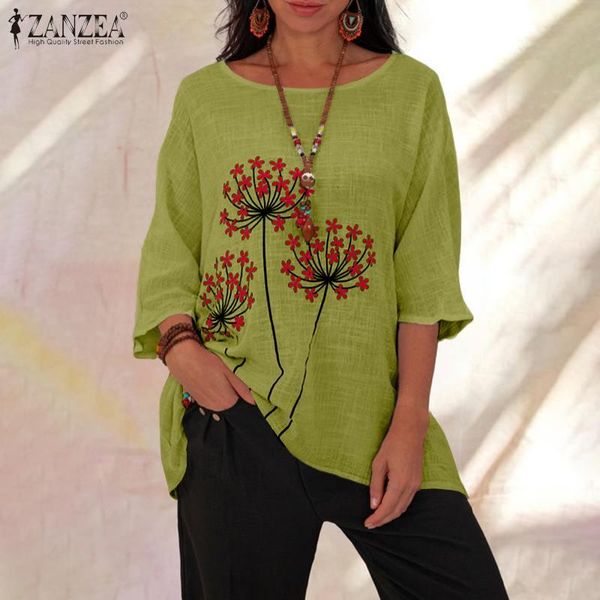 women's blouses & shirts 2022 kaftan printed floral blouse casual 3/4 sleeve blusas female o neck summer tunic chemise, White